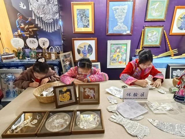 兴文县是四川省最大的苗族聚居县,小朋友在现场体验苗族文化。