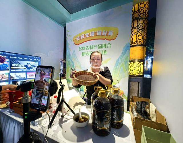 “社区主播”擂台赛现场,主播推介家乡美味。