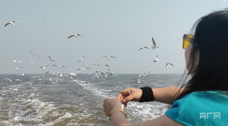 游客在渔船上喂海鸥(央广网见习记者 安适存 摄)