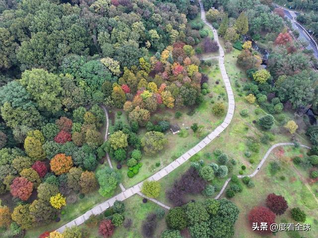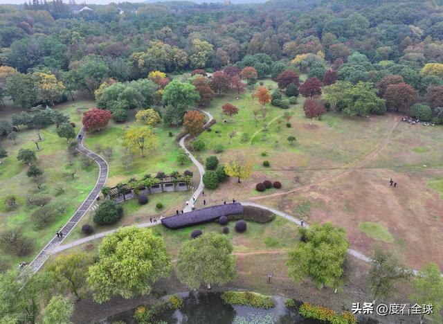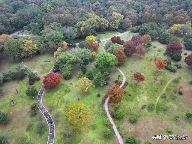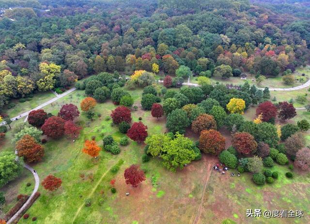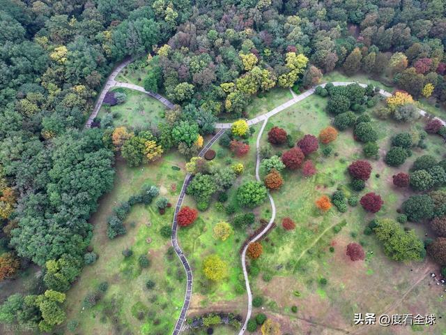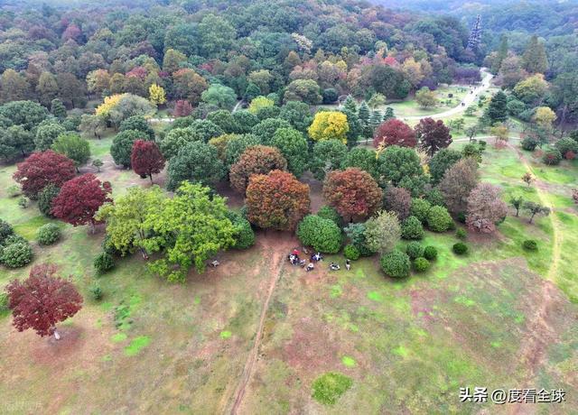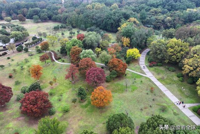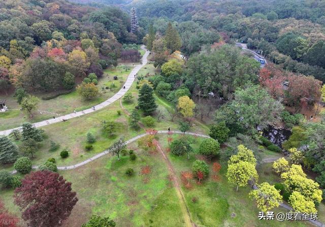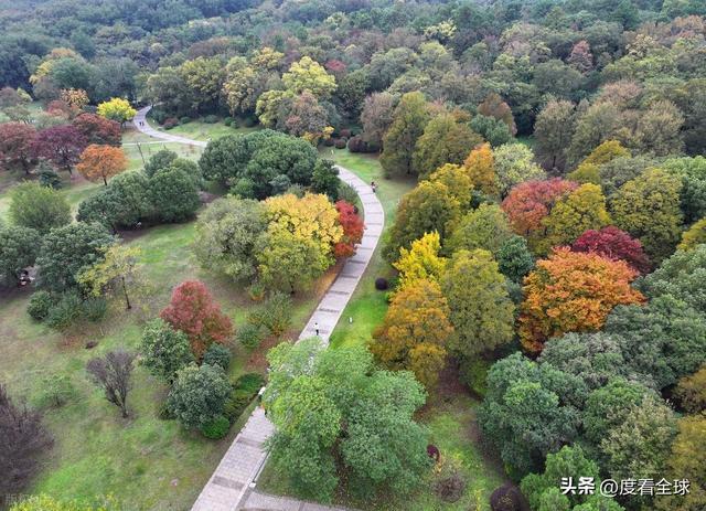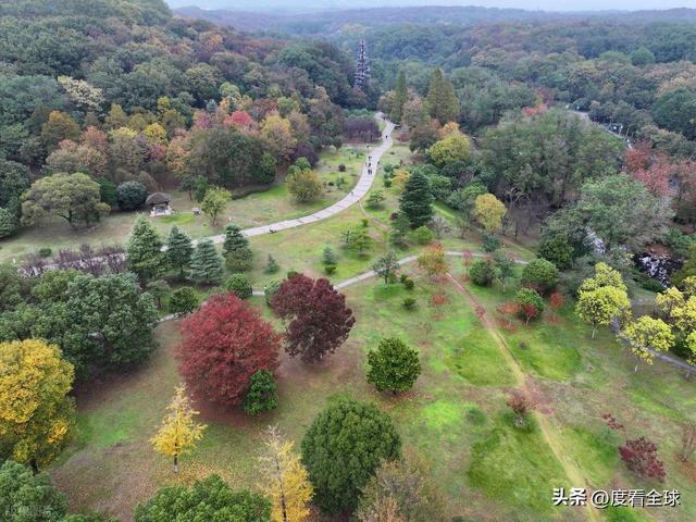 除了这些热门的赏秋地点,钟山风景名胜区的博爱园也藏着别样的秋日惊喜。博爱园位于钟山南麓,紧邻中山陵,这里视野开阔,草坪广阔,是感受秋日暖阳的绝佳去处。进入 11 月,博爱园的草坪依旧保持着几分绿色,与周围渐渐变黄的树木形成鲜明对比。远处的中山陵在秋日的阳光下更显庄严肃穆,而近处的草坪上,孩子们在嬉戏奔跑,老人们在散步聊天,情侣们在野餐约会,一派祥和惬意的景象。