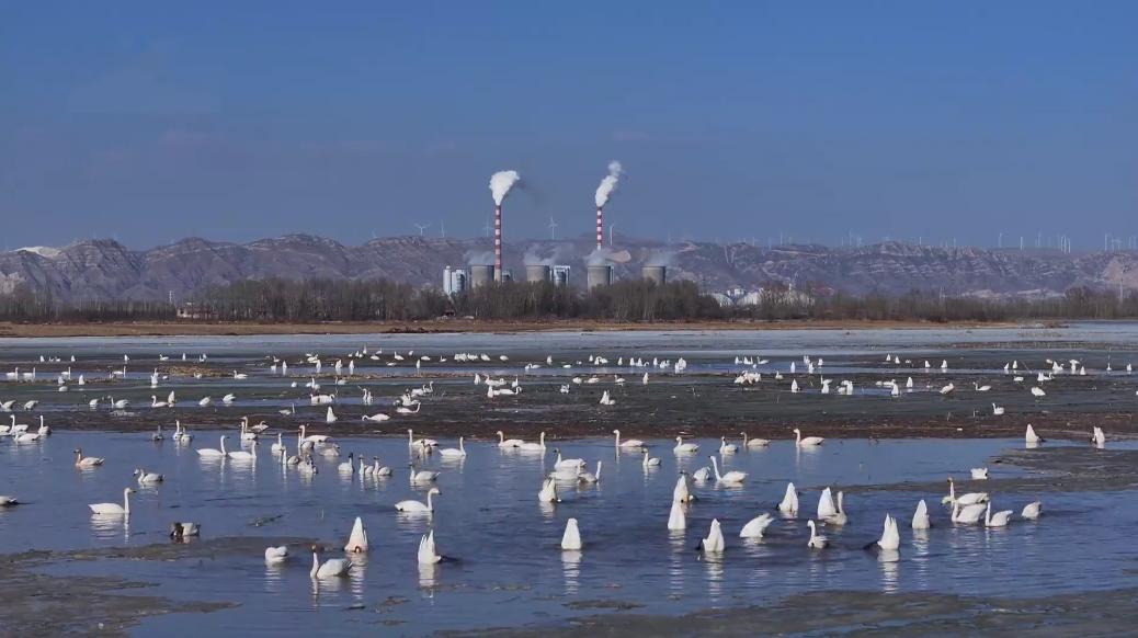 最近,随着近千只白天鹅陆续飞抵,圣天湖湿地正式迎来了一年一度的“天鹅季”。它们在此栖息觅食、嬉戏飞翔,将以此地为家,度过长达数月的越冬时光,为这片黄河湿地奏响了冬日浪漫的序曲。