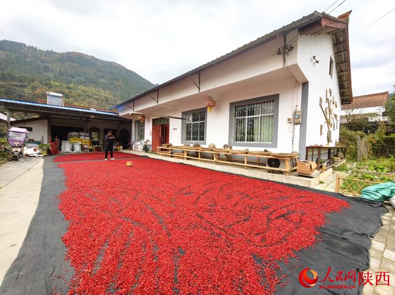 当地村民在晾晒山茱萸。人民网记者 魏鑫摄