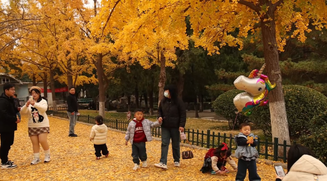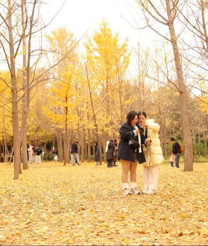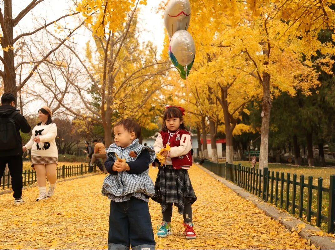 动物园的秋景满是温馨活力,熊山旁的银杏落叶铺成“金色地毯”,孩子们尽情嬉戏,情侣们牵手漫步,暖阳与金黄映衬下,一幅幅生活气息十足的画面,为秋日添了几分柔情。