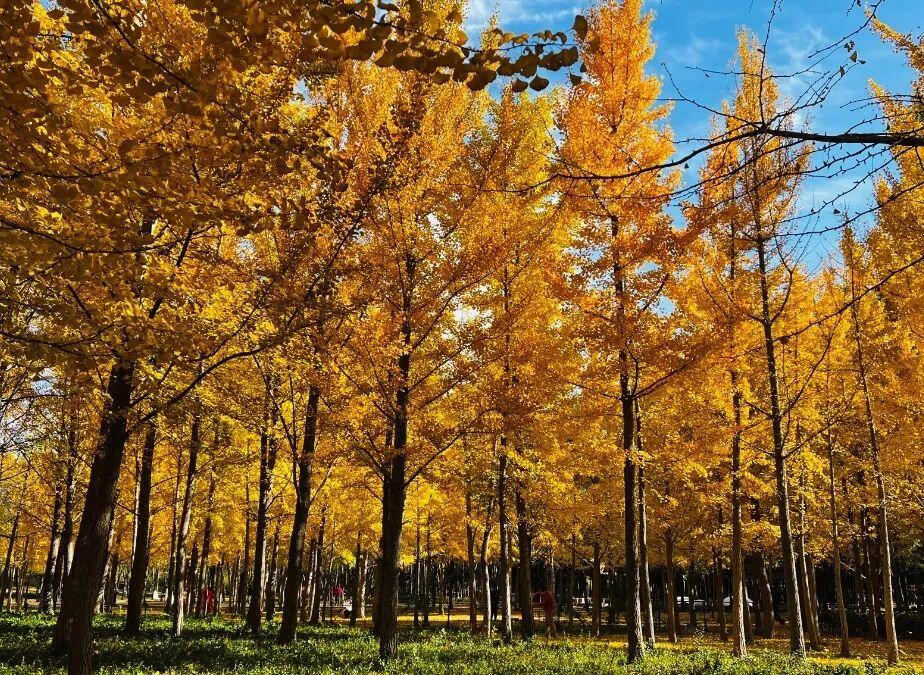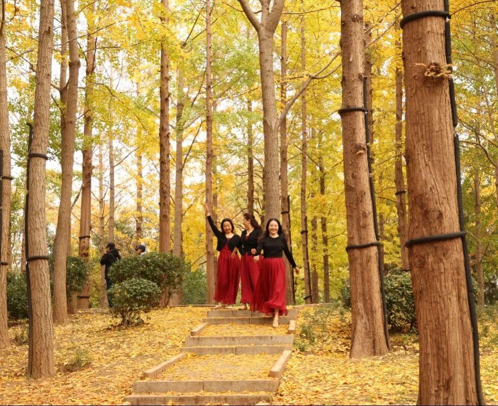 森林公园的银杏林堪称“金色童话世界”,成片银杏树换上金黄盛装,阳光洒落满树鎏金,落叶铺就“黄金步道”。市民游客或与亲友并肩漫步,或摆姿拍照,欢声笑语中沉醉于秋日的温暖治愈。