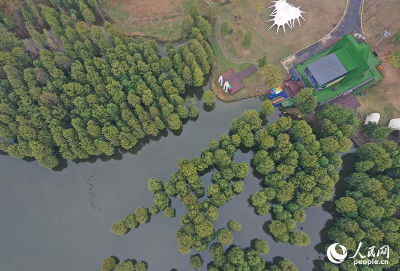 湖陂村2000余棵池杉构成的“水杉秘境”。人民网记者 时雨摄