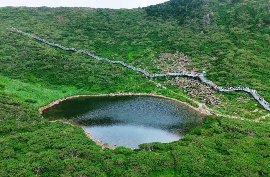 乘索道开启洗马潭栈道之旅,6.5公里的线路里,1.6公里的高海拔木栈道直抵海拔3920米的“山巅冰碛湖”——这处第四纪冰川遗迹,周边冰斗、刃脊的地貌,是冰川雕刻苍山的“杰作”。索道上行时,不同地质年代的岩层暴露带在窗外铺展;徒步栈道间,血雉、太阳鸟、金色林鸲翩飞,行于山巅,总能带来意外惊喜。