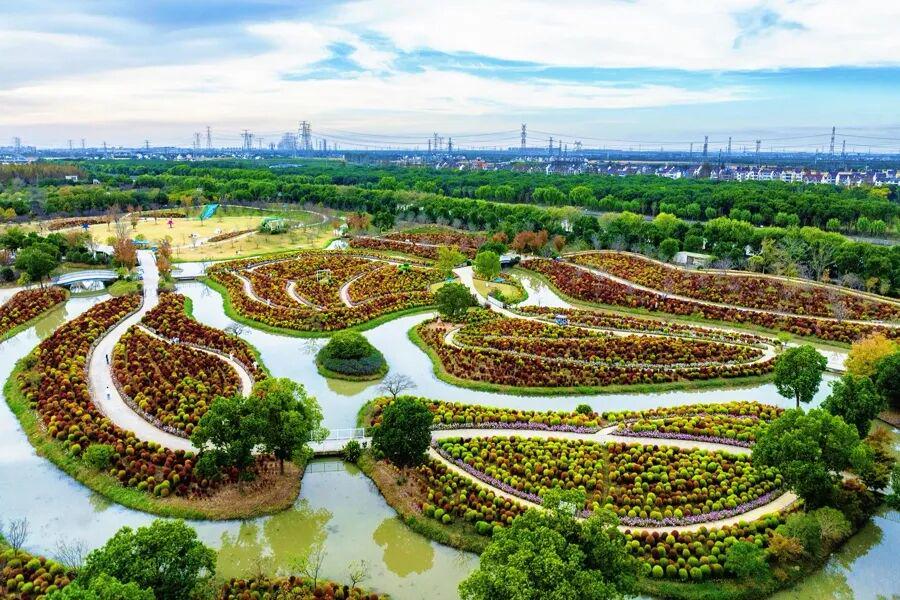 “目前,地肤草已进入年度最佳观赏期。”花开海上生态园执行总经理助理杨梅介绍,“红色覆盖率过半,景观色彩层次最为丰富。每一株地肤都圆润饱满,远观气势恢宏,近看灵动可爱,非常适合游客拍照打卡和摄影创作。”