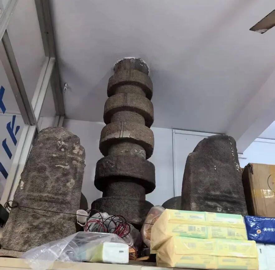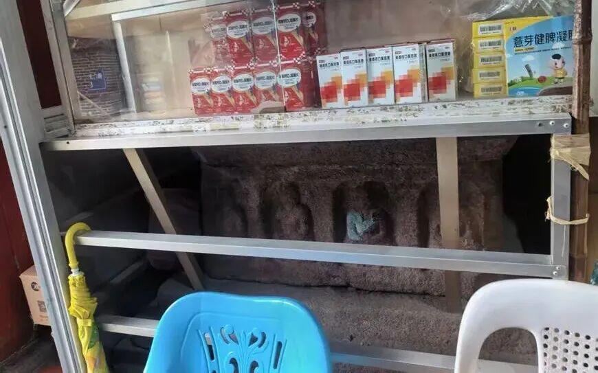 另一座阿育王塔藏身在枫亭古街的一家鞋店后院,从当地居民提供的图片看,这个塔仅存碑石,塔座塔顶塔身都已经损毁严重,看不清任何雕像。