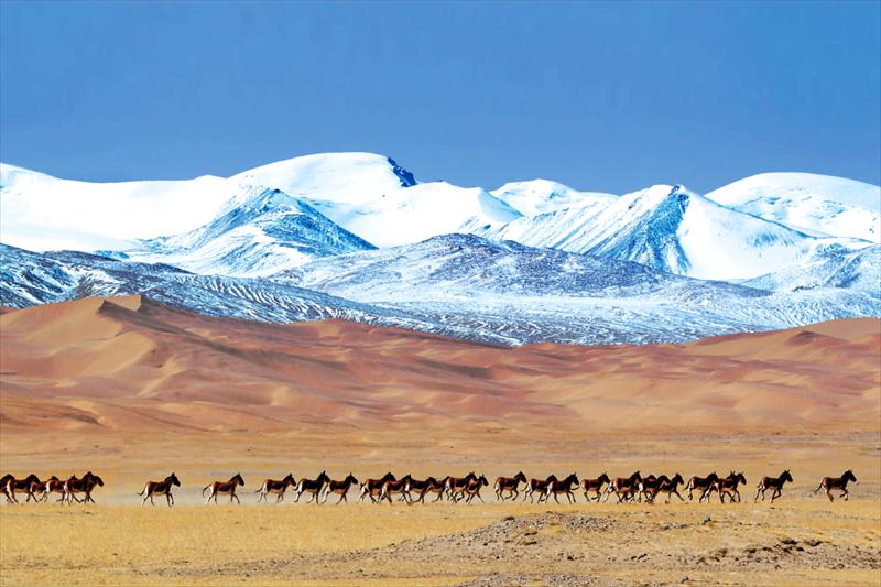 昆仑山下,藏野驴自由奔驰。海西州文体旅游广电局供图