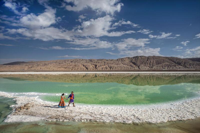 游客定格茶卡盐湖美景。海西州文体旅游广电局供图