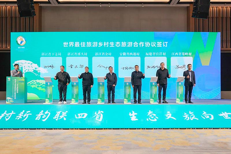 活动现场,浙江丽水、福建宁德、江西景德镇、安徽黄山4市代表依次登台,生动展示了各自独特的生态文旅资源与发展成果。来自不同国家的4位旅居者以其亲身体验,讲述了在浙皖闽赣四省的美好生活故事。四省6家“世界最佳旅游乡村”代表共同签署生态旅游合作协议;四省省级旅游协会共同签订了入境游合作框架协议。浙皖闽赣四省还发布了文旅互惠政策,涉及景区、酒店、餐饮、民宿等方面。