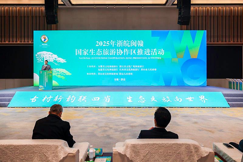 人民网黄山11月15日电 (记者苗子健)11月15日,由浙、皖、闽、赣四省携手举办的2025年浙皖闽赣国家生态旅游协作区推进活动,在安徽省黄山市黟县举行。