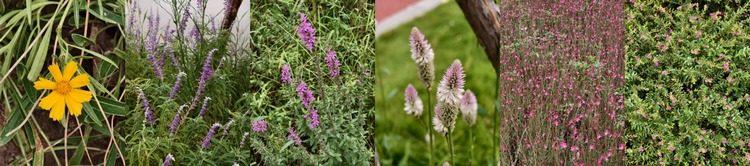从左到右:金鸡菊、墨西哥鼠尾草、千屈菜、青葙、山桃草、细叶萼距花