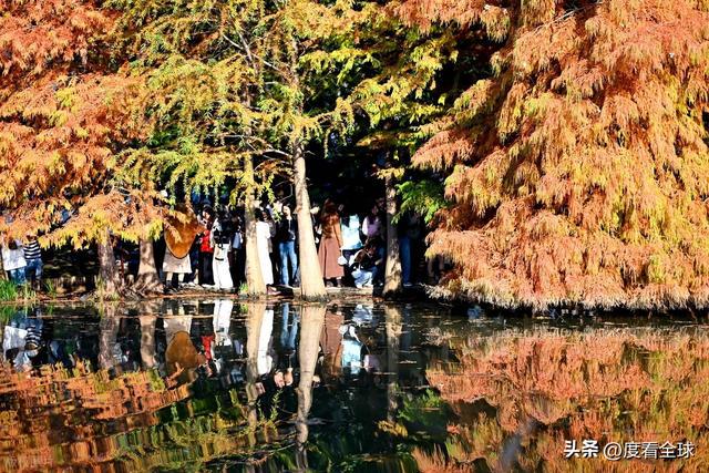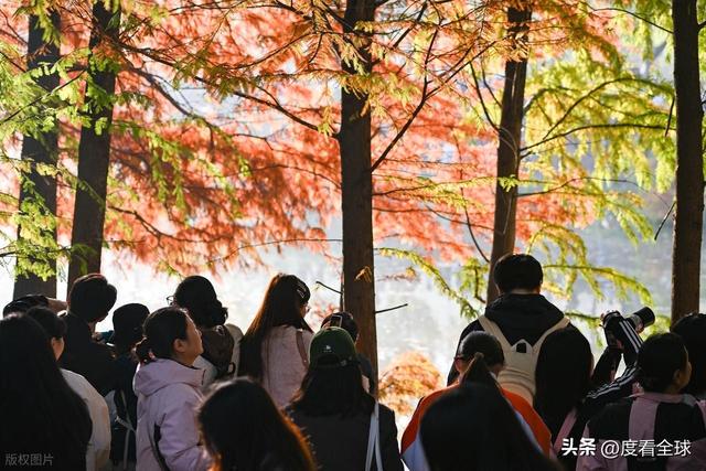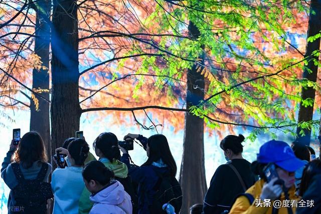 此时的池杉,叶片上还带着清晨的露珠,在阳光的照耀下晶莹剔透,红的更艳、黄的更亮、绿的更翠。不少摄影爱好者早已架起相机,守候在湖畔的各个角落,只为捕捉第一缕阳光洒在池杉林上的瞬间。“为了拍这组照片,我特意早起赶第一班地铁过来,太值了!” 来自南京本地的摄影爱好者张先生一边调整相机参数,一边兴奋地说,“每年初冬我都会来这里打卡,今年的色彩比往年更艳丽,尤其是晨雾中的景致,简直像水墨画一样,怎么拍都好看。”