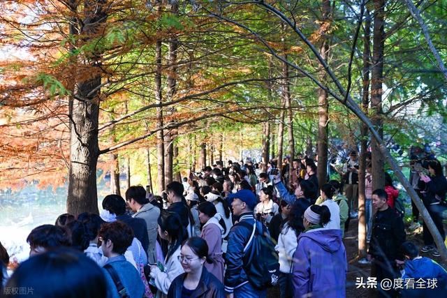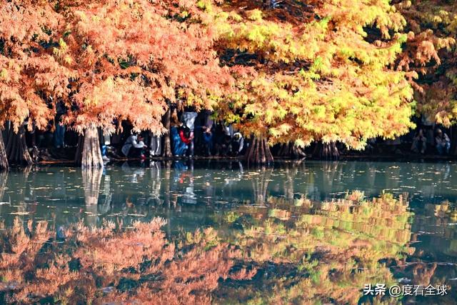 “一半青绿染湖色,一半红黄醉初冬。” 2025 年 11 月中旬,南京明孝陵景区燕雀湖畔的池杉林如期进入最佳观赏期,数十万株池杉、落羽杉褪去盛夏的浓绿,换上五彩斑斓的 “盛装”,青绿、橙黄、绯红、深红交织错落,倒映在澄澈如镜的湖面上,与远处的明孝陵红墙黛瓦相映成趣,构成一幅浑然天成的初冬画卷。连日来,这片 “金陵初冬限定美景” 不仅吸引着源源不断的本地市民和外地游客慕名而来,更在抖音、今日头条、微博等社交平台持续刷屏,相关话题阅读量累计突破 5000 万,成为这个冬天最火的 “网红打卡地”。