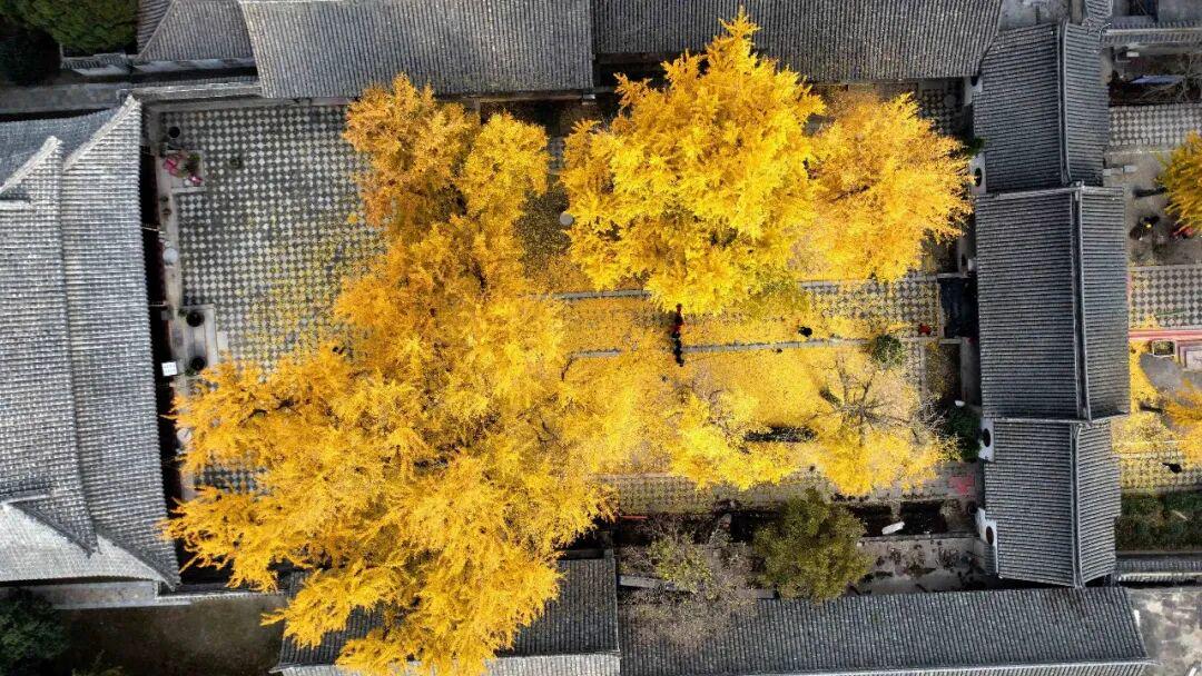 其中最受瞩目的,便是散落在城内东北隅报恩禅寺、西大街的孔庙、西南隅清真寺,的11株“国宝级”的银杏。每一处都藏着与时光共生的金黄秘境。
