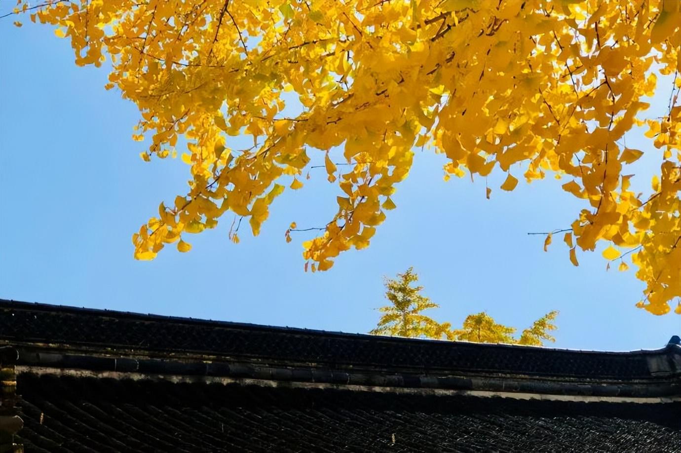 暖阳下,银杏叶褪去青涩、换上鎏金盛装,在初冬的天光里熠熠生辉,绽放出迷人的光芒;微风轻拂,飘落的黄叶宛如成群的金色蝴蝶在空中翩翩起舞,为古朴的石板路、黛瓦老屋披上一层柔软的金色华毯。