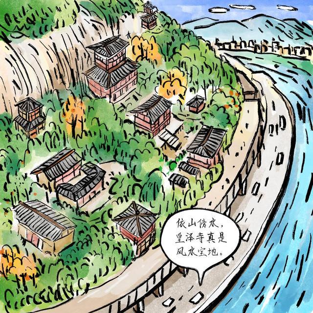 穿过绿荫小道拾级而上,便是郭沫若手书的石碑:“广元皇泽寺”。俯视崖下,江水奔流;回首寺内,曲径通幽、花木繁茂,香火终年不断、游人络绎不绝。寺内的二圣殿、武氏家庙、大佛楼、写心经洞、五佛亭、吕祖阁倚岩屹立、错落有致,实乃一幅绮旎的巴蜀胜景图。