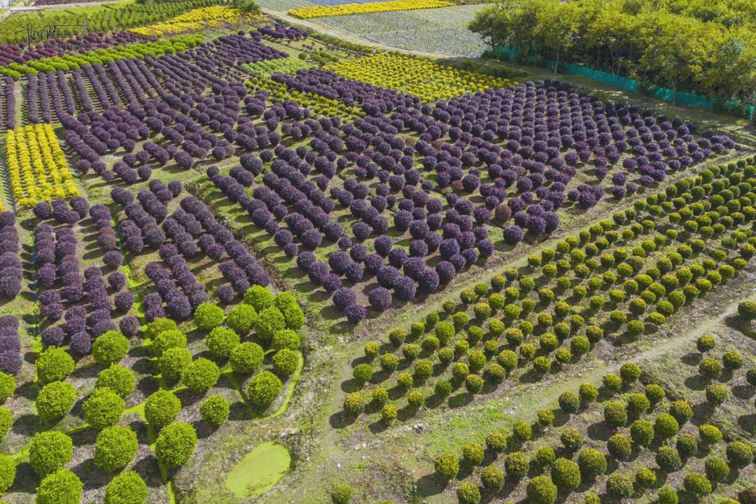 类似的景观其实在杭州也有很多,尤其富春江畔,我就曾经偶遇过上千亩的小树都被种成这种“球状”,它们密密麻麻又按照各自不同的颜色紧凑排列在一起,看上去是一望无际的可爱。虽然大理崇圣路边的这些树球规模没那么大,但在他乡能看见雷同的场景,还是莫名多出几分“遇故知”的喜悦。