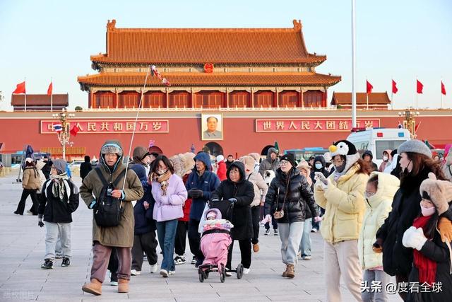 虽然 17 日的北京寒意十足,但严寒并没有阻挡人们出行的脚步,更没有冲淡游客对天安门广场的热爱与向往。来自四川的游客张先生带着父母和孩子一起来到北京,他告诉记者,父母一辈子都想来北京看看天安门,这次特意趁着退休后有时间,带着家人圆了这个心愿。“虽然天气冷,但父母特别开心,一直在说‘终于见到天安门了’,看到他们满意的笑容,我觉得再辛苦也值得。” 张先生说,为了让家人保暖,他特意给每个人都准备了两套厚衣服,还带了暖宝宝、热水袋等保暖用品,“出来玩,安全和舒适最重要”。