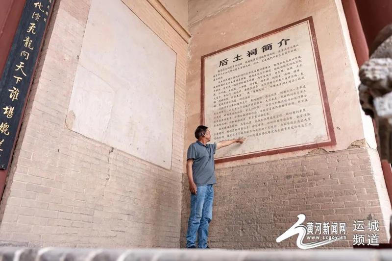 “你朝西北方向看,两公里处的黄河夹滩,便是后土祠最初的原址。也就是说,我们现在所在的后土祠是后期重新修建的。”站在后土祠山门外开阔的祠台上,讲解员薛蓉指向西北,将历史的层叠变迁娓娓道来。黄河多次泛滥,古老的后土祠屡毁屡建,原址承载的厚重历史,更增添了现存祠庙的沧桑底蕴。