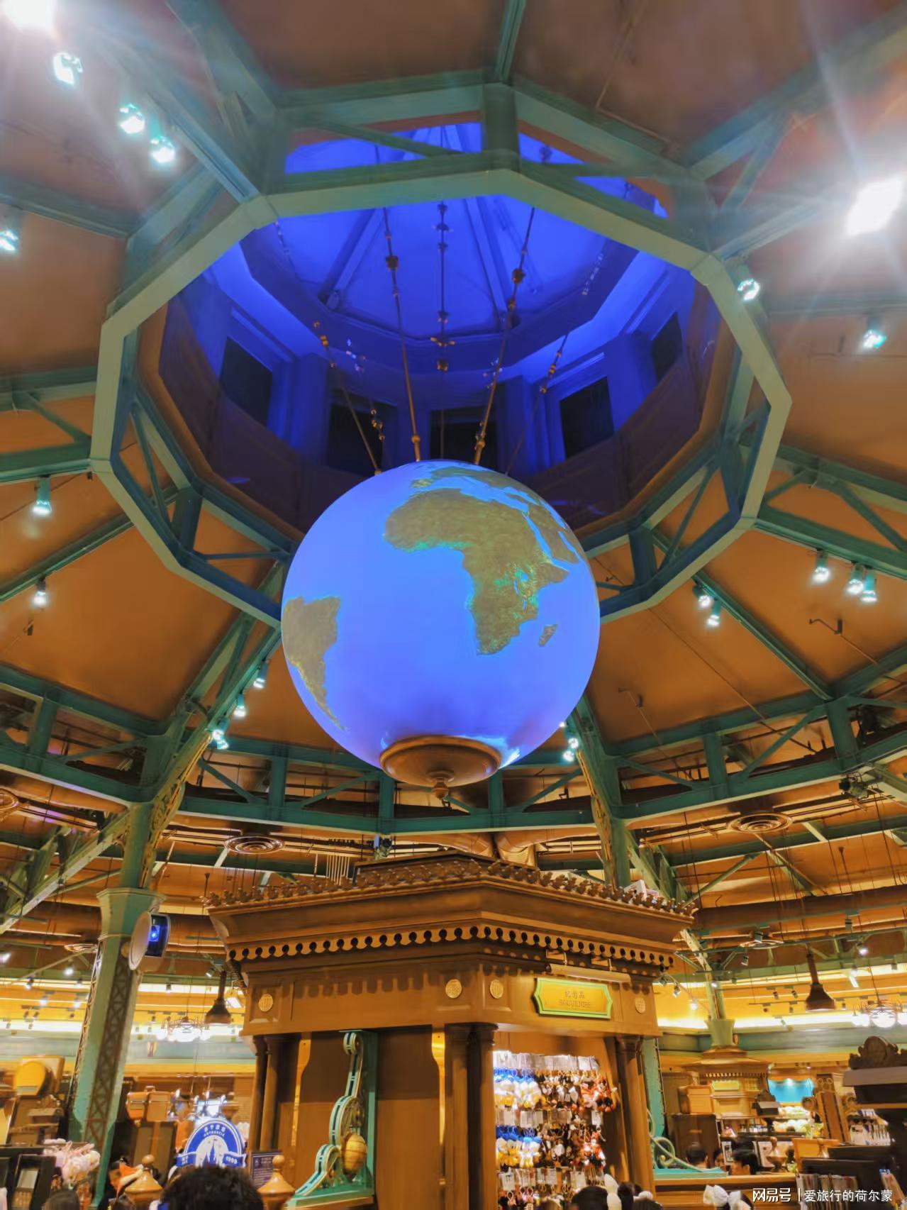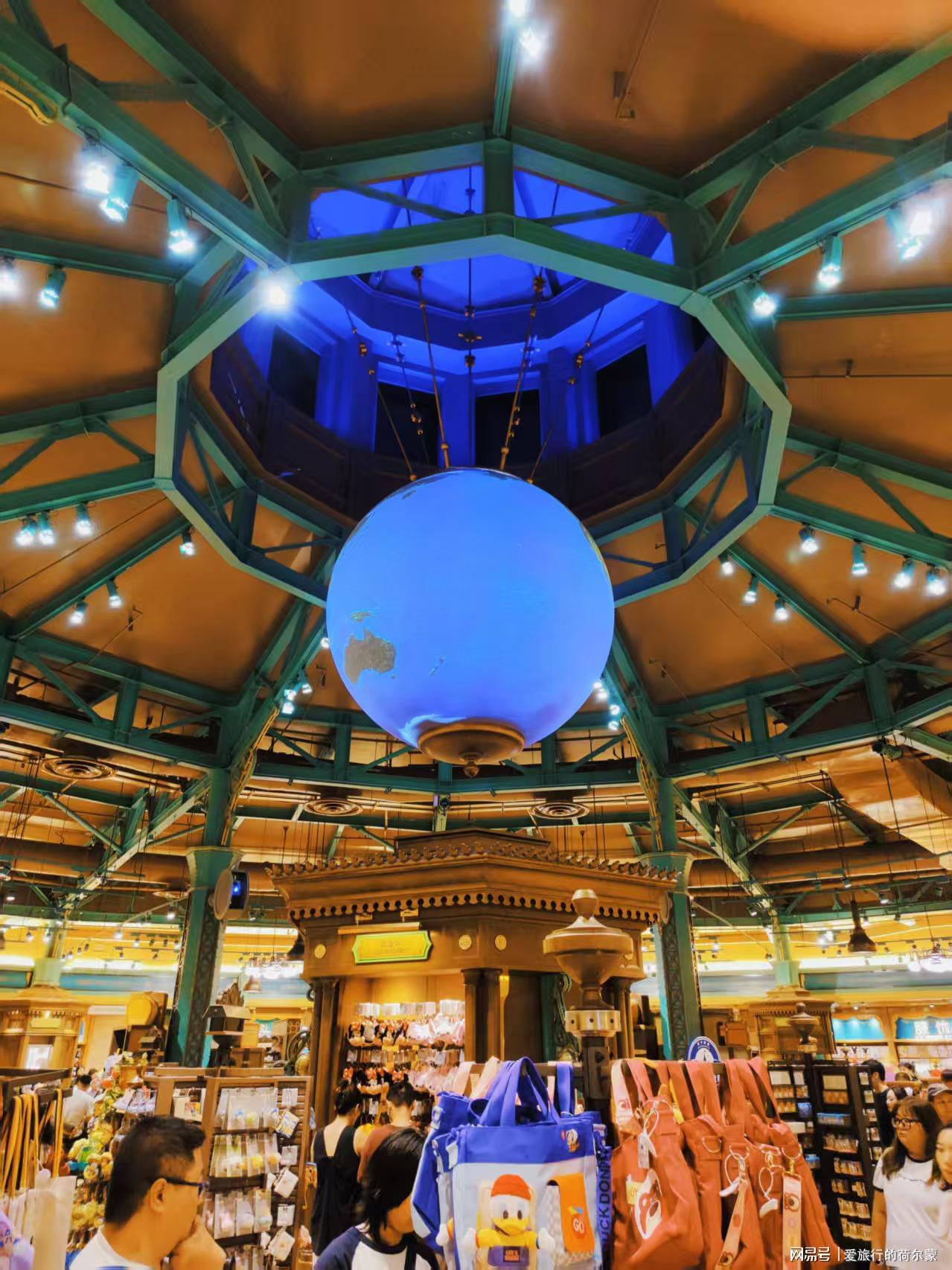 我走进店内,看到商店的顶部中央装饰着一个巨大的地球。我向店员询问,店员告诉我这个是投影的效果,它时常会播放迪士尼的相关影片,就是想让顾客沉浸在迪士尼的氛围当中。我个人感觉,这个科技效果是很好的,就像自己已经在一座迪士尼城堡里一样,特别有意义。
