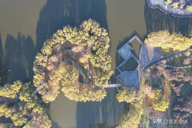 鸡泽县诗经文化园的这场 “一物三影” 奇观,并非偶然的巧合,而是自然法则与人文匠心的完美契合。从光学原理来看,这一现象是光的反射与折射共同作用的结果:11 月中旬的鸡泽秋高气爽,空气湿度适中,清晨的湖面平静无波,形成天然的 “平面镜”,树木本体在阳光照射下,一部分光线直接进入人眼形成实景。