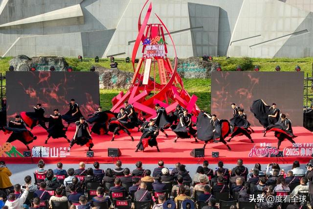 开幕式的序幕在庄重的毕摩祈福仪式中拉开。身着传统服饰的毕摩手持经卷,用古老的彝语诵读祈福经文,歌声《祈福》随山风飘荡,传递着彝族人民对来年风调雨顺、国泰民安的美好祈愿。紧随其后的男子群舞《生在火塘边》,舞者们身着黑色察尔瓦,模仿着火塘边劳作、欢歌的场景,粗犷有力的舞姿与鼓点共鸣,将彝族人民与火相伴的生活智慧和生命热忱展现得淋漓尽致。