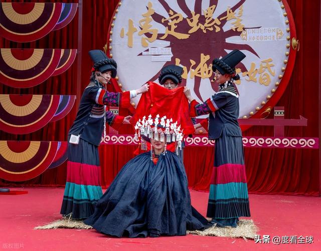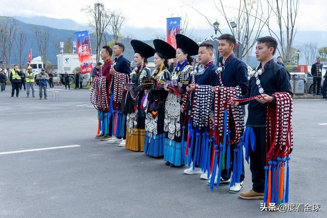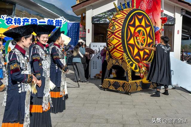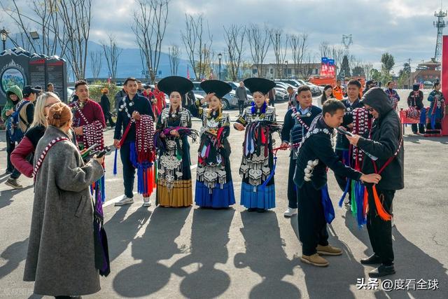 开幕式后的非遗大 “吉” 巡展,成为游客们争相打卡的核心区域。在赛猪膘展示区,一块块色泽金黄、油脂丰厚的猪膘肉整齐排列,这道彝族年节的 “硬菜” 不仅是财富的象征,更承载着农耕文明的饮食智慧,游客们纷纷驻足拍照,向当地村民请教猪膘肉的制作工艺。不远处的 “山海大婚实景秀” 更是人气爆棚,身着传统婚服的 “新人” 在唢呐声中登场,按照彝族婚俗完成迎亲、拜火、喝交杯酒等仪式,游客们可以亲自参与其中,扮演伴郎伴娘,沉浸式体验彝族婚俗的独特魅力。