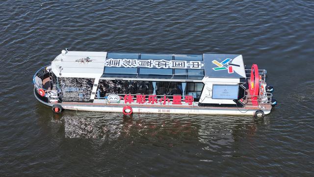 11月的浉河两岸美不胜收,一缕缕暖阳透过枝叶映射在地上,仿佛是一幅五彩斑斓的画卷。在落日码头,一艘别具风格的“体彩乐小星号”主题游船正停靠岸边,等待着游客们登船赏景,体验泛舟水上的乐趣。