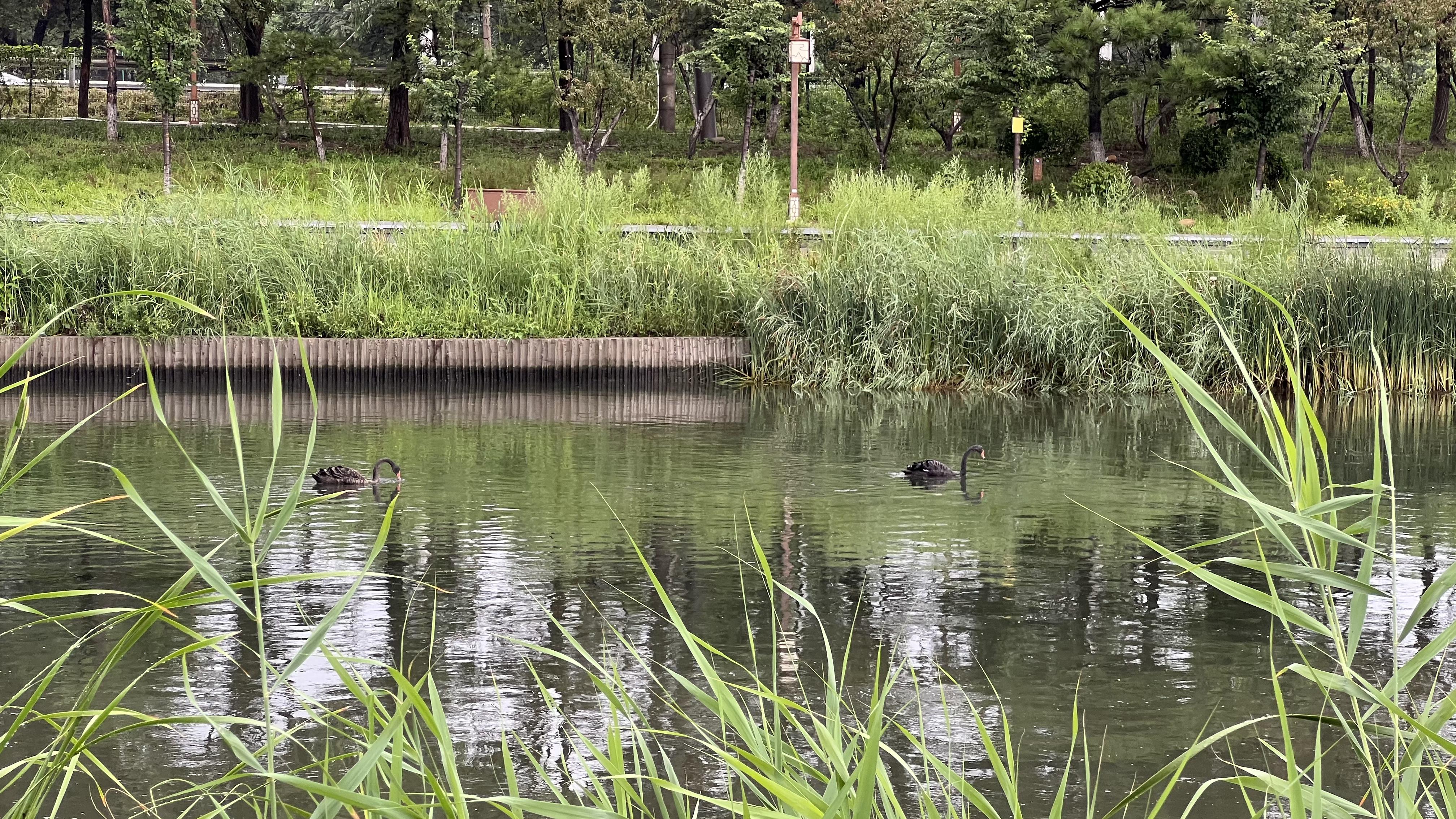 这份生机源于“自然修复”理念:岸边随水势蜿蜒的浅滩,水里芦苇、香蒲、荷花织就“水下森林”,水质靠“土壤-植物-微生物”系统自我调节。如今清河不仅成了黑天鹅的“育儿房”,更吸引震旦鸦雀、白鹭等50多种鸟类栖息,小鱼、蜻蜓都是生态链“原住民”。河畔的展板上,市民的照片记录着四季流转:春有天鹅哺育雏鸟,夏有黑天鹅宝宝在父母带领下学习游泳,秋有候鸟在景观点缀的水域中驻足。正如一位带着孙女来看天鹅的市民所说:“生态好了,万物有家,人自然幸福。”