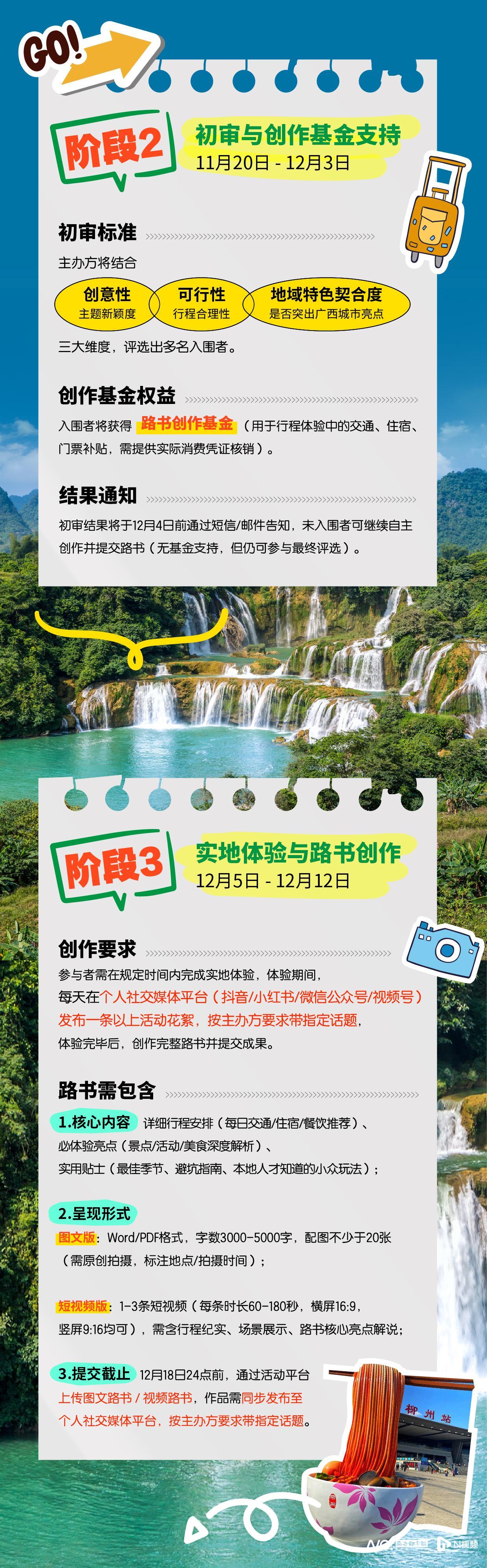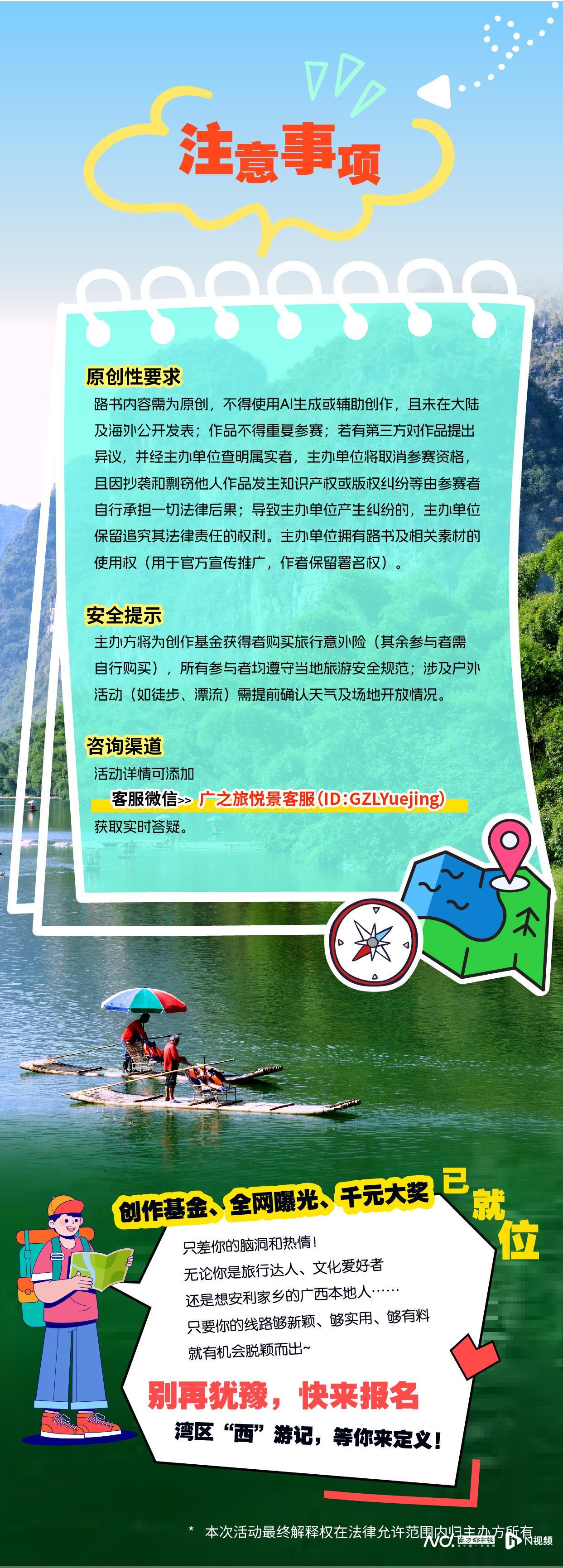 参与者可通过“广之旅头条”或“广之旅悦景”微信公众号报名及提交行程方案。主办方将从创意性、可行性、地域特色契合度三大维度评选入围方案,入围者可获专项路书创作基金支持,用于实地体验与内容产出。