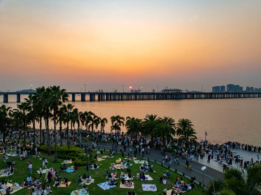 星空草坪、都市沙滩、山海连城骑行道等成为游客热门选择,新近开业的海边咖啡店也备受关注。