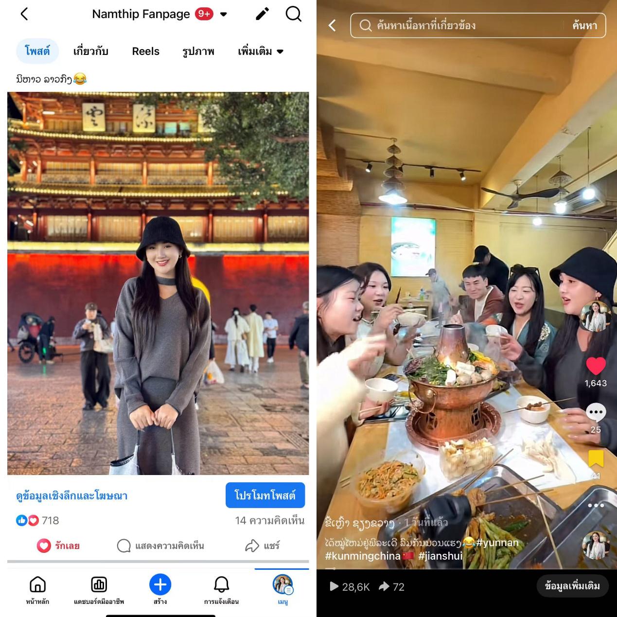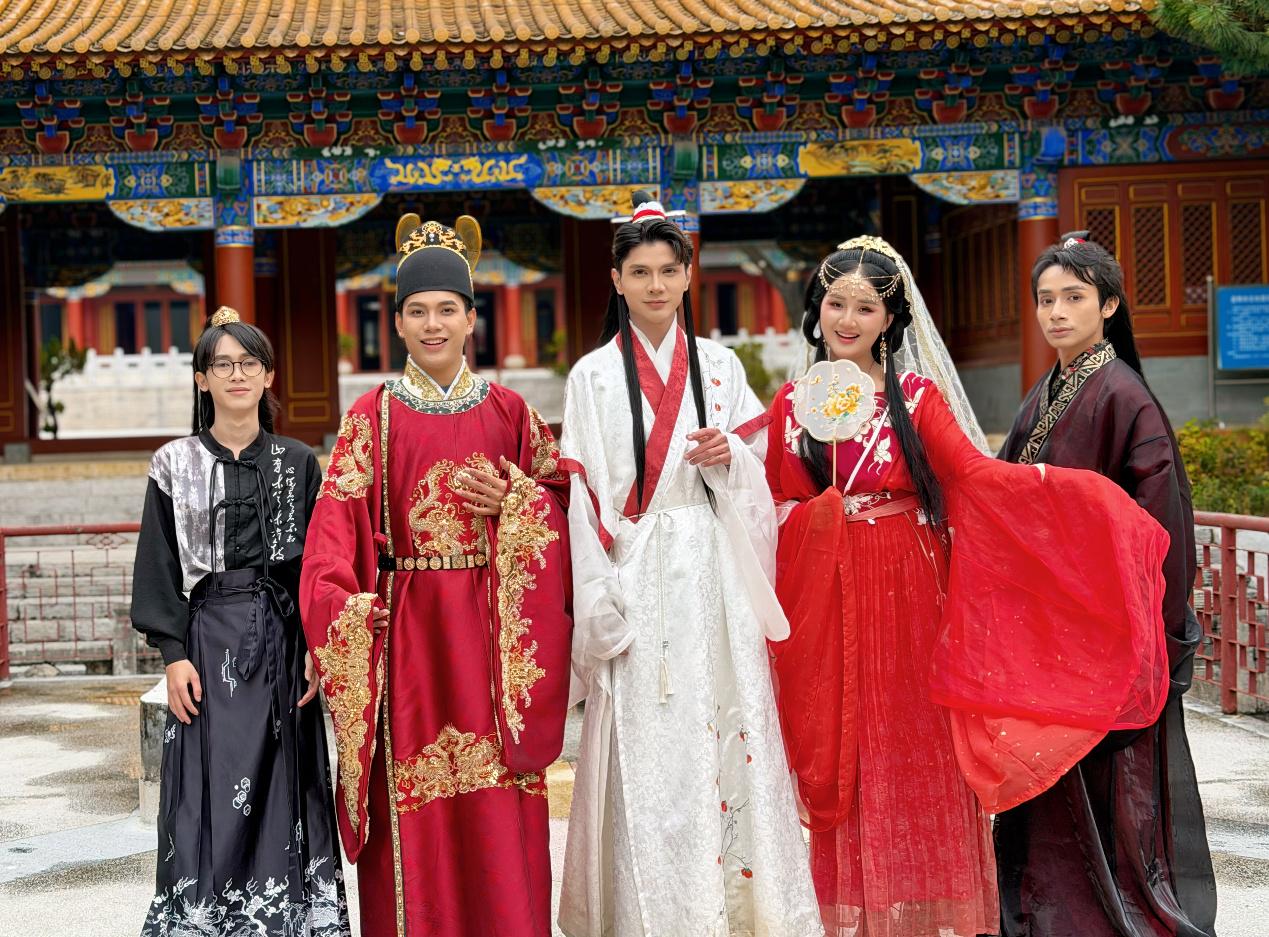 步入昆明老街,青石板路与飞檐翘角瞬间将时光拉回往昔。拥有120余万粉丝的老挝博主Parn对着琳琅满目的明制汉服与战国袍兴奋不已,陷入了甜蜜的"选择困难":"每一套都太美了,我都想试!"而拥有60多万粉丝的Thip,在完成精致妆造后,立刻化身"古装偶像剧主角",手机拍个不停,迫不及待地通过社交媒体展示华服魅力。