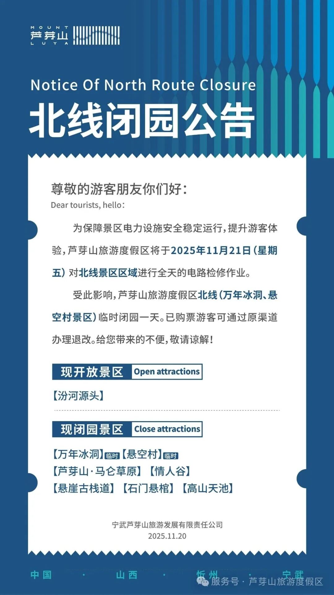 公告!芦芽山旅游度假区北线临时闭园 芦芽山景区关闭通知最新 芦芽山马仑草原闭园通知