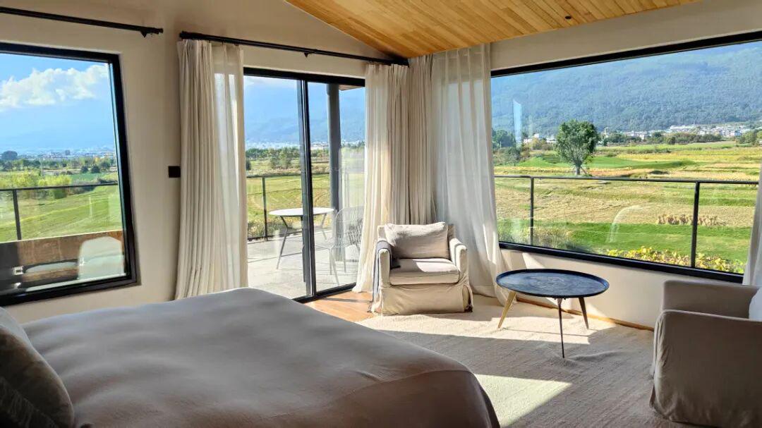 安微微没有止步于享受大理的田园牧歌,而是选择在自己擅长的领域继续发光发热。她打造的“大吉”民宿坐落于银桥镇木易村,与周边田园风光浑然一体。不同于洱海边高端酒店的奢华喧嚣,大吉民宿外观与当地民居保持一致,内部则融合了现代舒适与在地文化。