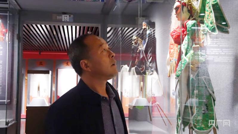 朱学在平凉戏曲博物馆参观展品(央广网记者 寇刚 摄)