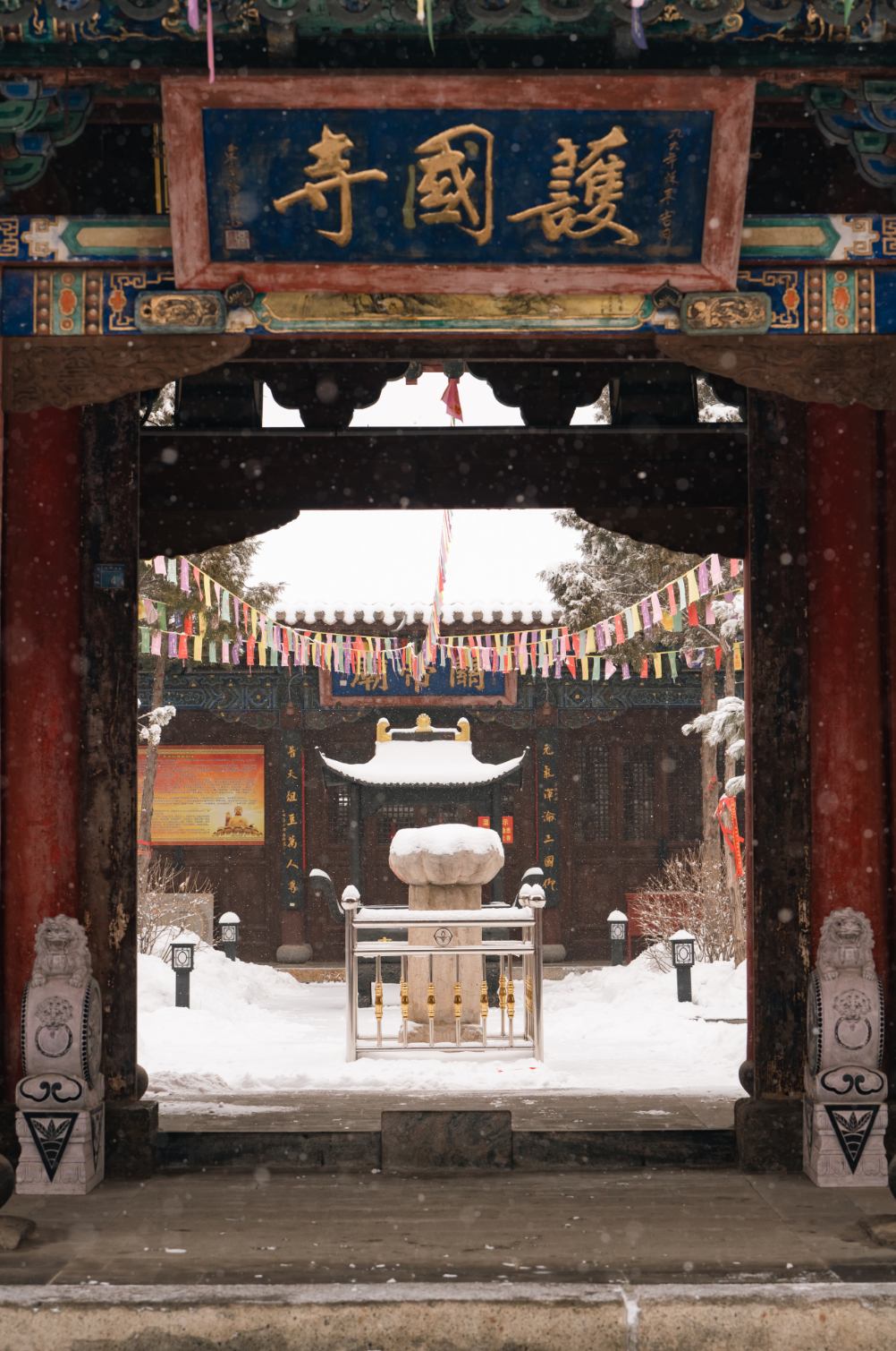 雪花轻吻千年砖瓦,