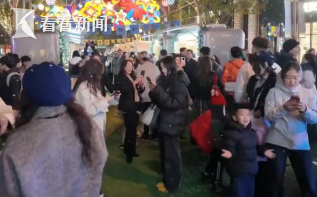 靠近外滩的BFC商场,也在周末拉开了“冬日嘉年华”的序幕,在漫天“飘雪”中,枫泾路市集美食与现场演绎交织。