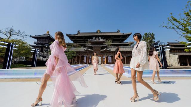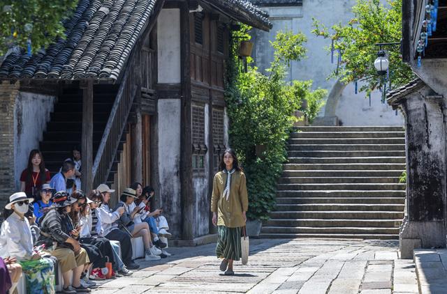 新华社照片,桐乡(浙江),2025年5月12日,濮院时尚古镇老街上举行的时装周“自然剪辑时装秀”。新华社记者 徐昱 摄