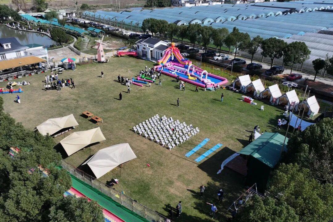 2009年,因农超对接需求,安徽籍创业者吴荣身经朋友介绍来到回龙村,彼时这里还是一片低洼的藕塘和零散的小鱼塘。“当时二话没说就把荒地整理了,合并鱼塘、复耕土地、打造草坪,一步步把种植和休闲的底子铺起来。”回忆起创业之初,吴荣身直言,从最初单纯的稻米、蔬菜种植,到如今覆盖亲子游乐、企业团建、学校研学的多元业态,新君宴用十余年时间完成了从“田间”到“田园”的蜕变。