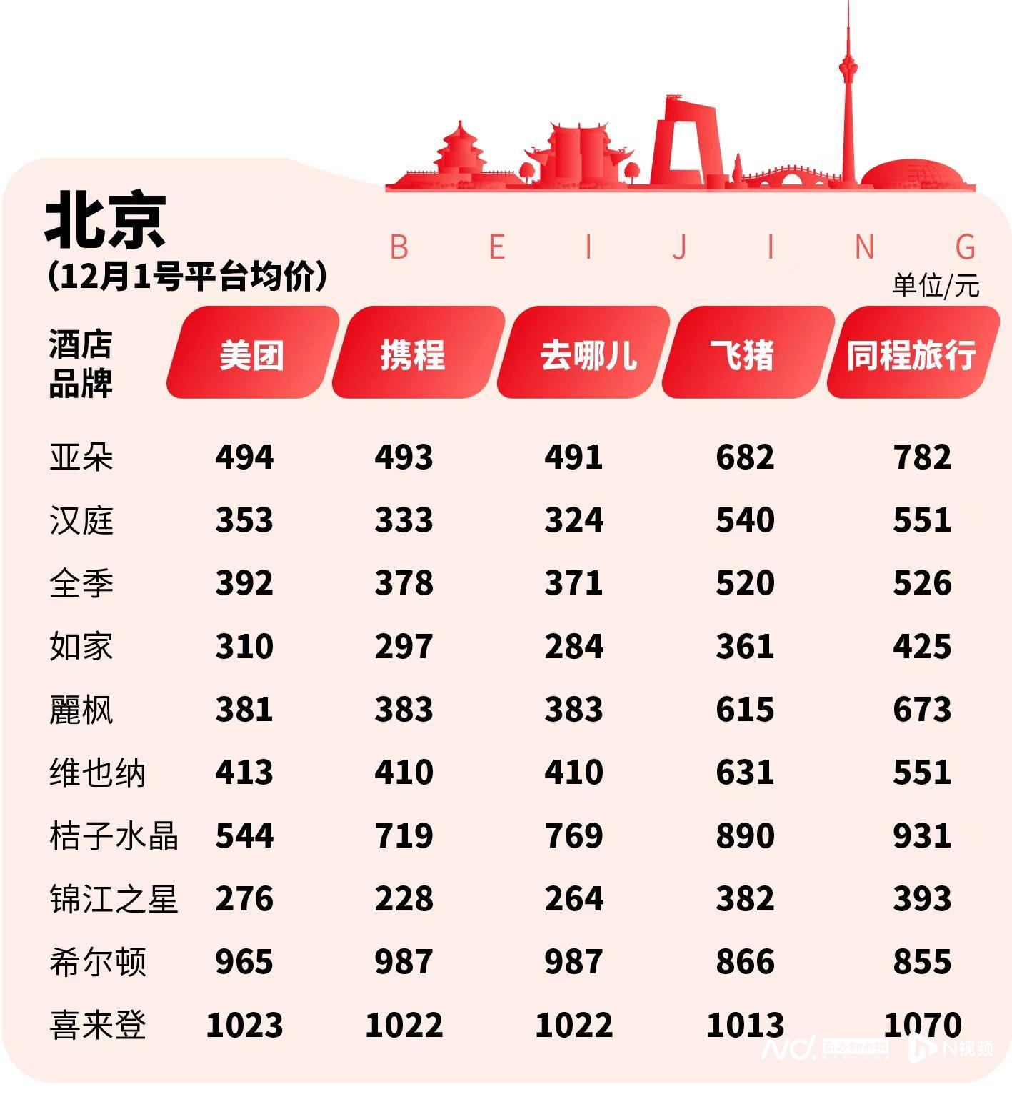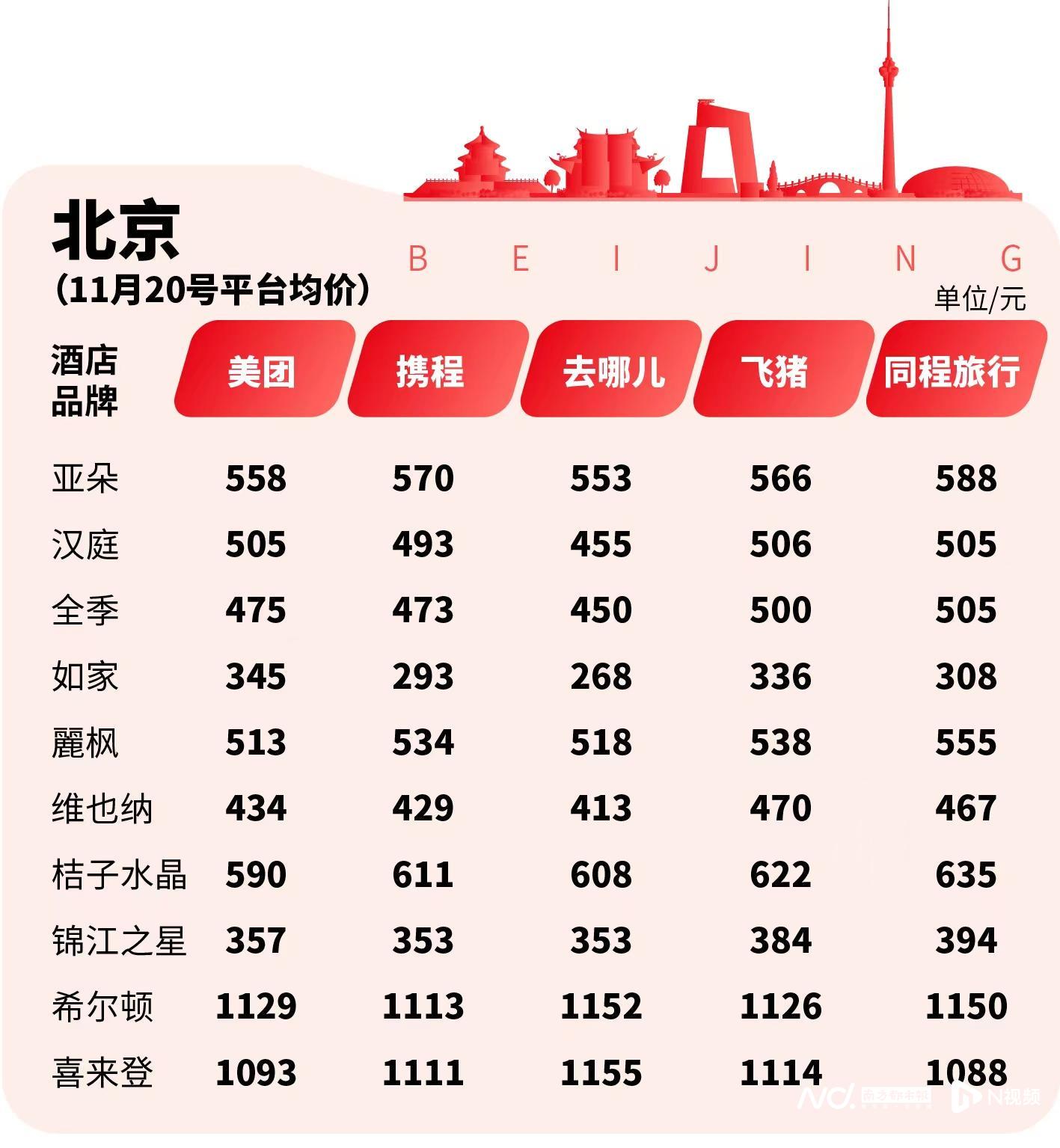 对此,南都鉴定评测实验室“酒店价格指数”课题组本期聚焦11月20日至12月1日期间,选取北京、上海、广州为样本城市,深度追踪携程、美团、去哪儿、同程旅行、飞猪五大在线旅游平台(OTA)上十大商务酒店品牌的价格动态。本期旨在深入解析旅游淡旺季的价格波动幅度,并着重对比不同城市因大型文体活动引发的价格差异。通过分析,力求为消费者出行提供精明参考,同时助力业界把握市场趋势,构建多维度的价值参考体系。