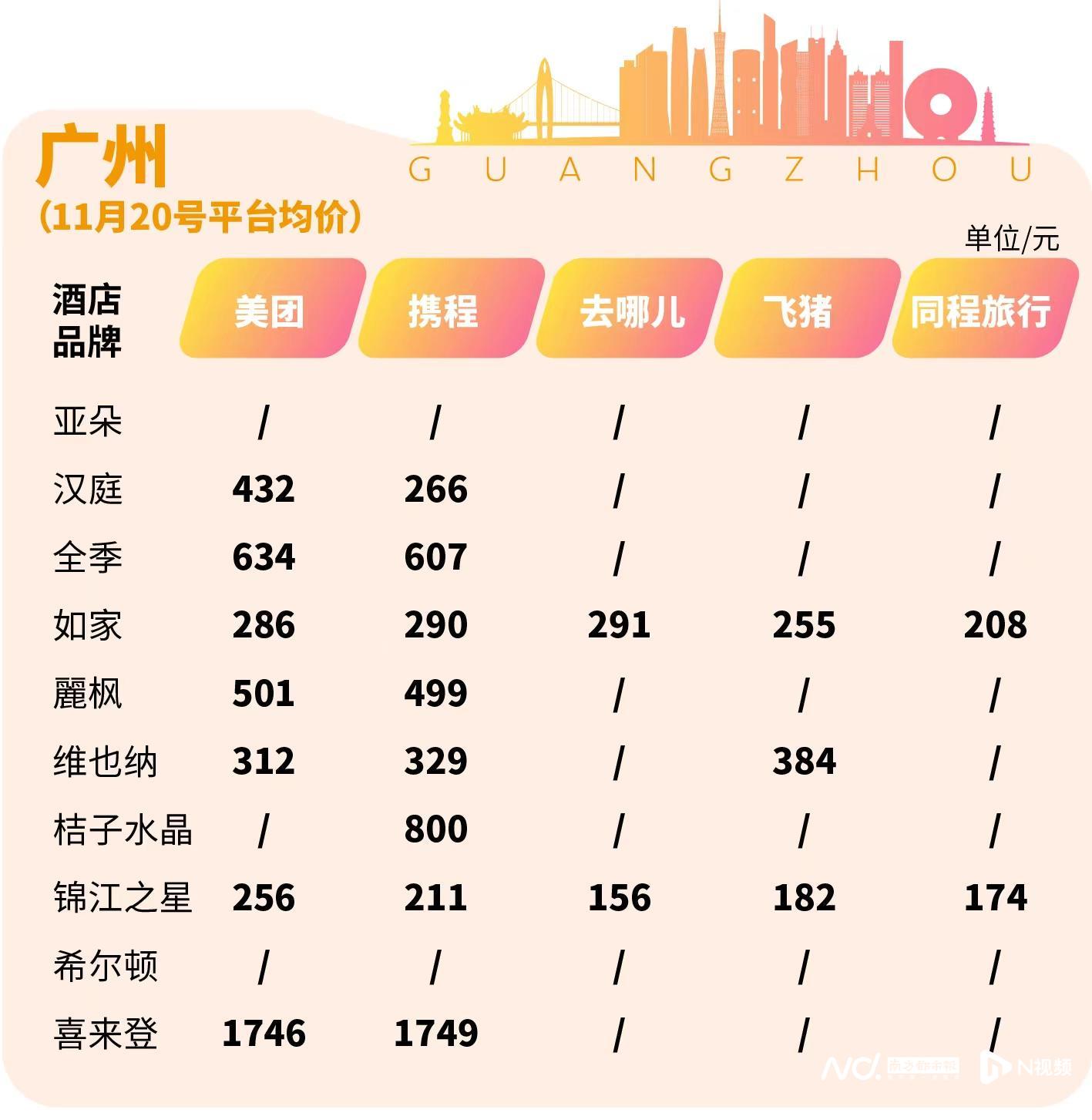 综合本期(11月20日-12月1日)数据来看,在传统旅游淡季的11月,广州酒店市场因第十五届全运会的举办而展现出别样的活力。南都·湾财社记者观察到,高端品牌酒店价格依然坚挺,其价格体系表现稳定,且在各预订平台间保持高度一致,部分高端酒店甚至在11月期间出现售罄现象。