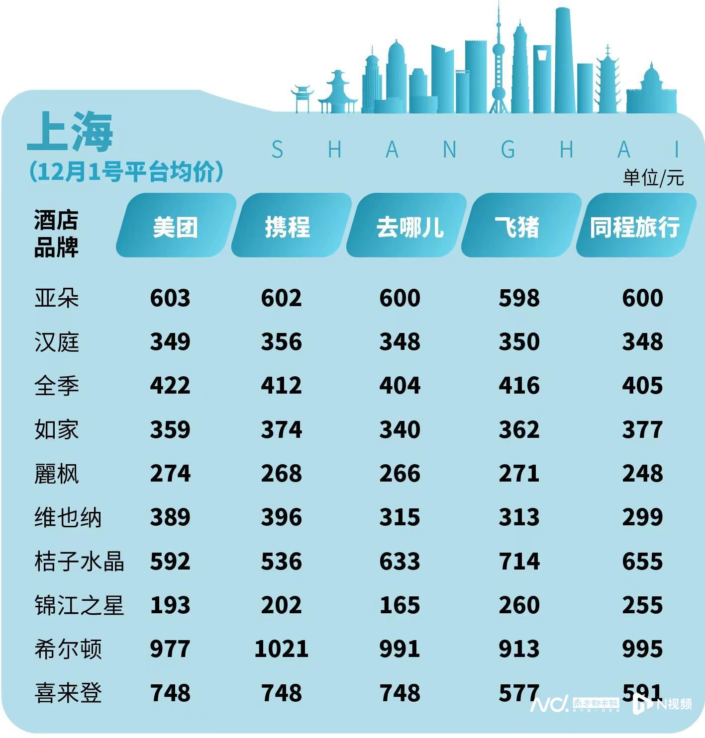 经济型品牌中表现也保持同样趋势。如家八佰伴店价格从417.6元微降至412.8元,跌幅1.2%,汉庭西藏南路店价格从293.4元降至269.8元,跌幅8.0%。