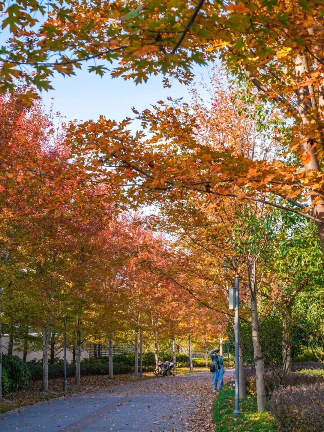 午后的阳光穿过云岭公园的树梢,洒在成片的红枫上,叶片从浅红渐变至深红,层层叠叠像燃烧的火焰。