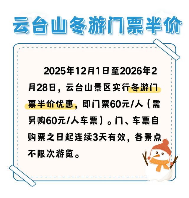 11月30日,记者从云台山景区获悉,2025年12月1日至2026年2月28日期间,云台山面向全国游客推出“冬游门票半价”优惠政策。