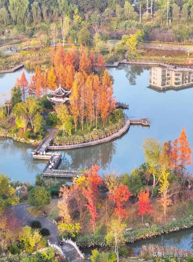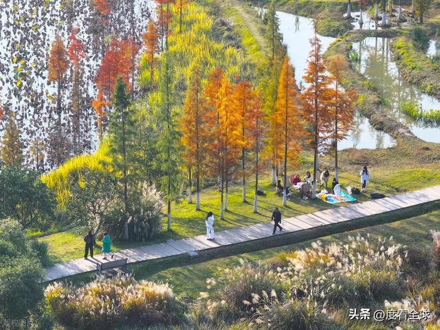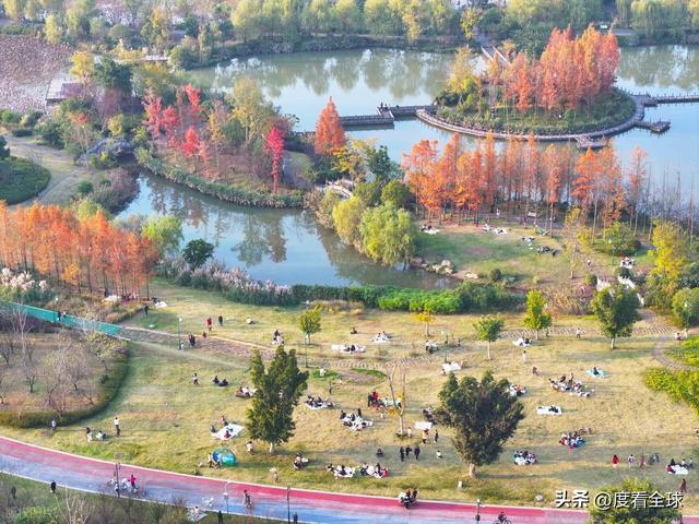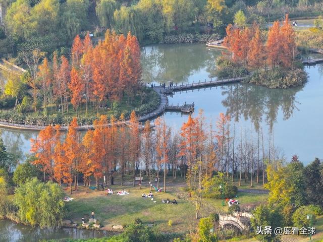 “快看!那片红枫倒映在水里,像极了打翻的调色盘!还有湖面上的鸳鸯,一群群浮在水面上,太灵动了!”11月29日,重庆梁平区双桂湖国家湿地公园里,来自主城的游客李女士举着手机不停拍照,镜头里的红枫、黄叶与碧波湖水相映成趣,成群候鸟在水面嬉戏,岸边的市民或慢跑健身,或静坐观景,冬日暖阳洒在每个人脸上,勾勒出一幅人与自然和谐共生的惬意画卷。