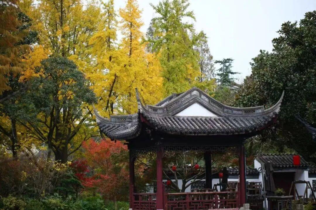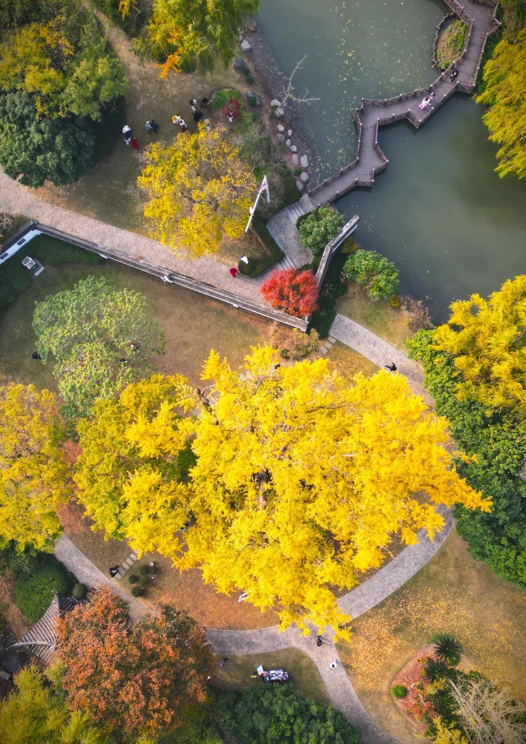 江南风韵,不止在古猗园,更在秋霞圃、汇龙潭等园林之间。水岸蜿蜒,一步一景,笼罩着一层淡淡的秋意,让人充满着诗情画意的遐想。还有上海树龄最长、生长于安亭镇古树公园内的0001号银杏“树王”,虽然今年因为园区维修无法近距离打卡见面,但是未来的秋冬还欢迎你来一睹它的风采,静待来年与它相遇~