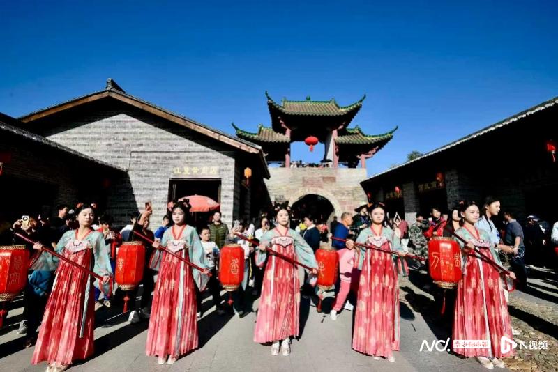 由本地龙狮队带来的九十九节长龙与雄狮共舞迎宾,在主会场拉开“村晚”帷幕。多个特色分会场,形成全域联动的文化嘉年华。硅门牌坊广场举行龙狮迎宾仪式,长龙巡游、醒狮献瑞,迎接八方来客;珠玑古巷主巷道及非遗馆的非遗展示区活动从上午持续至傍晚,集中展示广东省各地市特色非遗项目,粤北采茶戏、雄狮街舞、咏春拳等轮番上演,非遗馆内不仅可赏可购,还能亲手体验制作非遗美食;贯穿全巷的“姓氏寻根”巡游活动,以百家姓灯笼为引,带领游客沿着古道追溯家族根源,在祠堂前感受血脉相连的温情。此外,帽子峰景区、梅关古道还上演了银杏主题文化快闪,打造“跟着村晚去旅行”的诗意体验。结合第五届世界广府人恳亲大会,当地还同步开展“品非遗美食 促文旅消费”主题活动,推介本地特色产品与文旅资源,推动“文化流量”向“消费增量”转化。