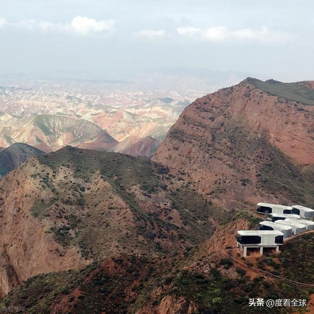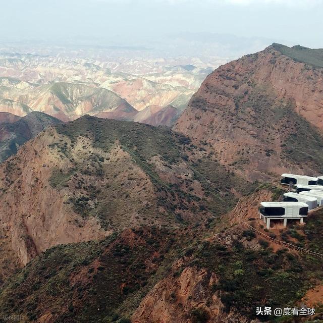 如果想深度体验丹霞的美,强烈建议在这里住一晚。12间太空舱民宿坐落在群山之间,舱体外的阳台围栏全是拼接玻璃,时尚感十足。住在里面,就像在太空中遨游一样,晚上还能看到漫天繁星,早上睁开眼就能看到日出洒在丹霞上的美景。